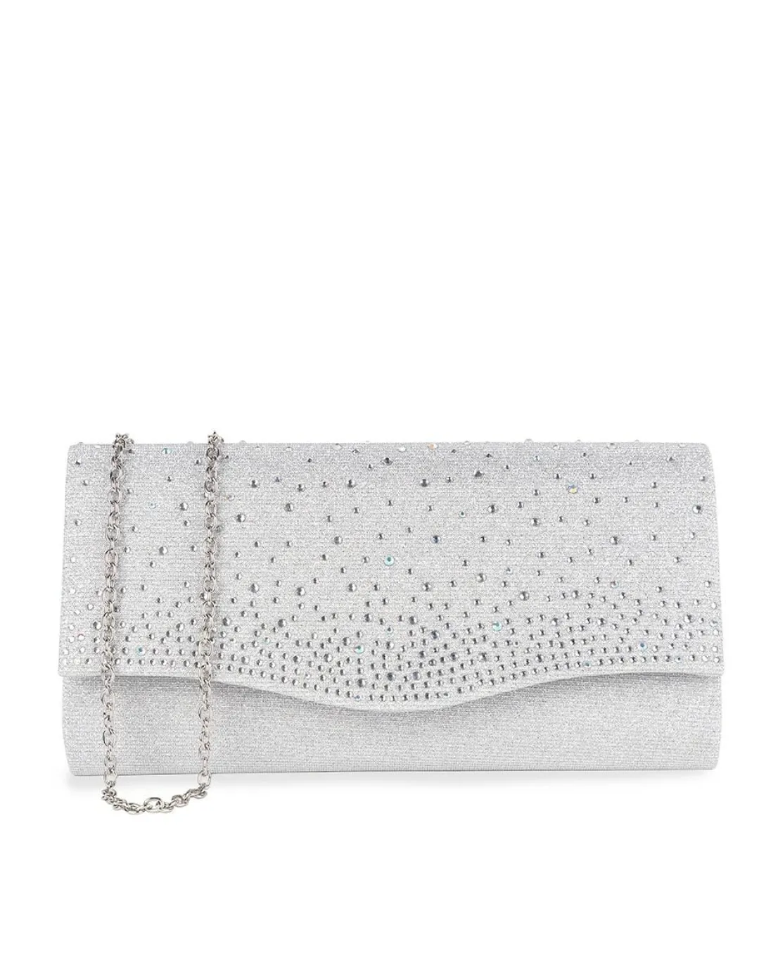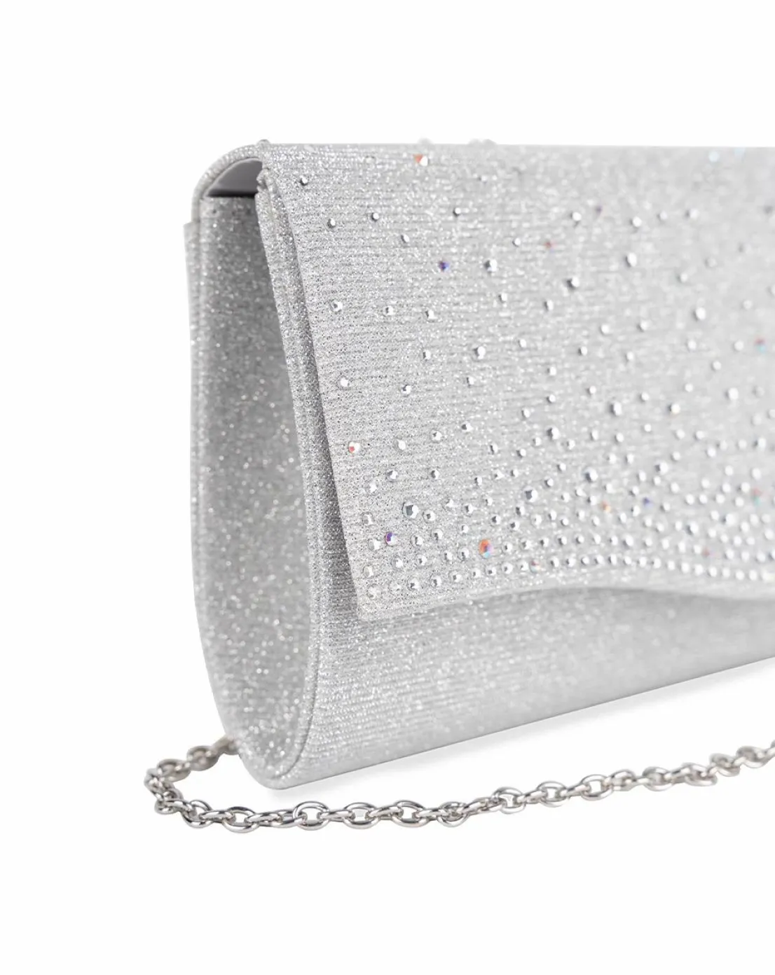 - The Deja clutch bag features a soft curve flap and is adorned with scattered crystals. The handbag also includes a detachable chain strap so you can alternate between clutch bag and shoulder bag.