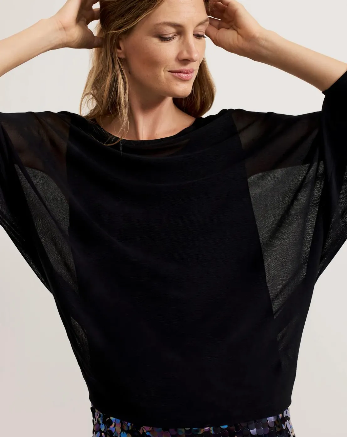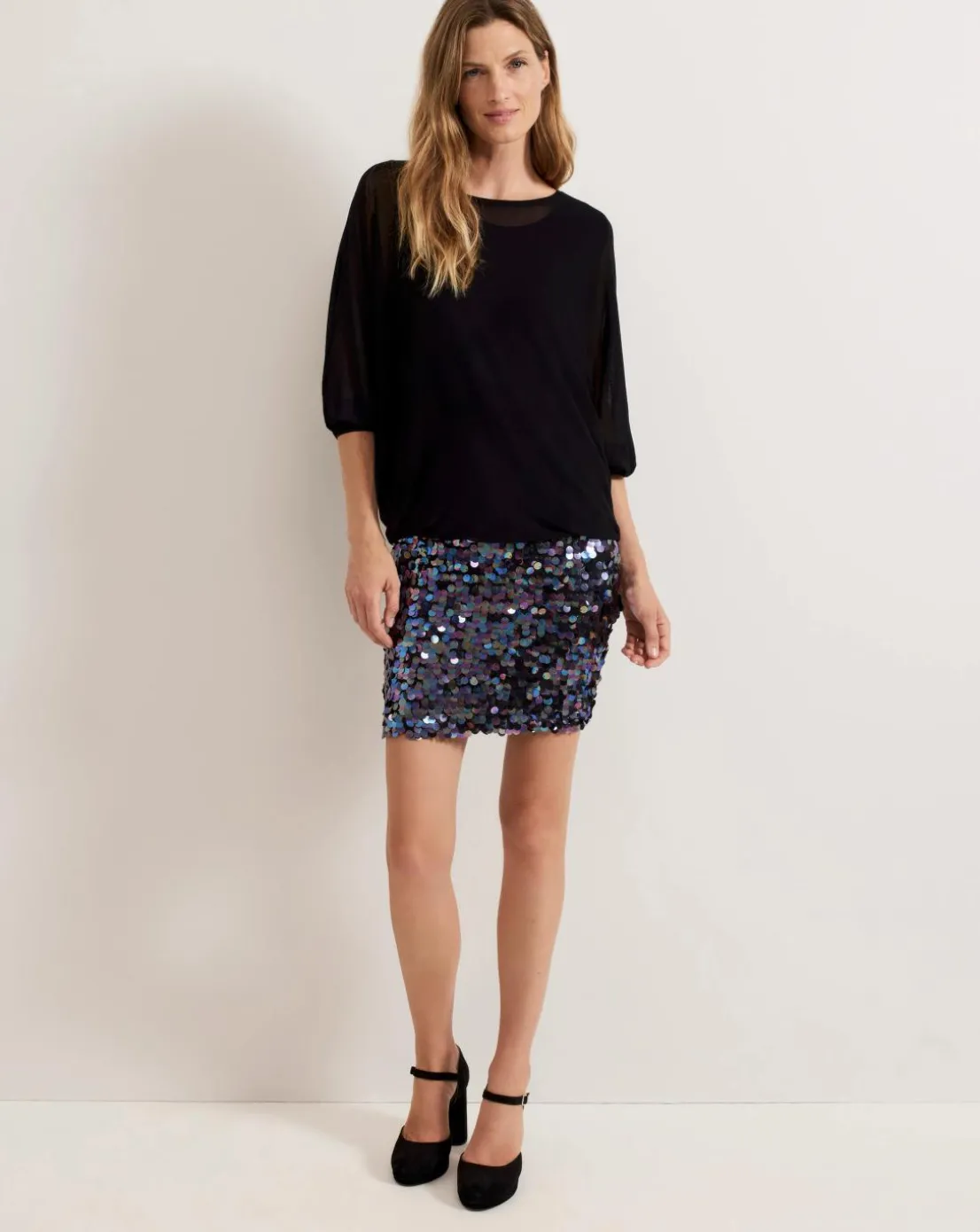 Dance the night away in our Becca dress. Designed with a black jumper top with 3/4 length batwing sleeves, our dress features a multicoloured sequin mini skirt that catches the light beautifully. It’s the fun feminine style for your next event