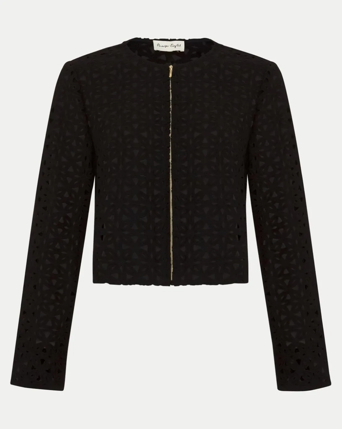 Our crochet Maeva jacket is perfect for effortless outfit building. Intricate cutwork detailing decorates the cropped boxy shape, providing a lighter-weight finish and modern feel, finished with a simple gold zip. Pair with our matching shorts for a coordinated summer look or as a final layer to all your favourite styles.