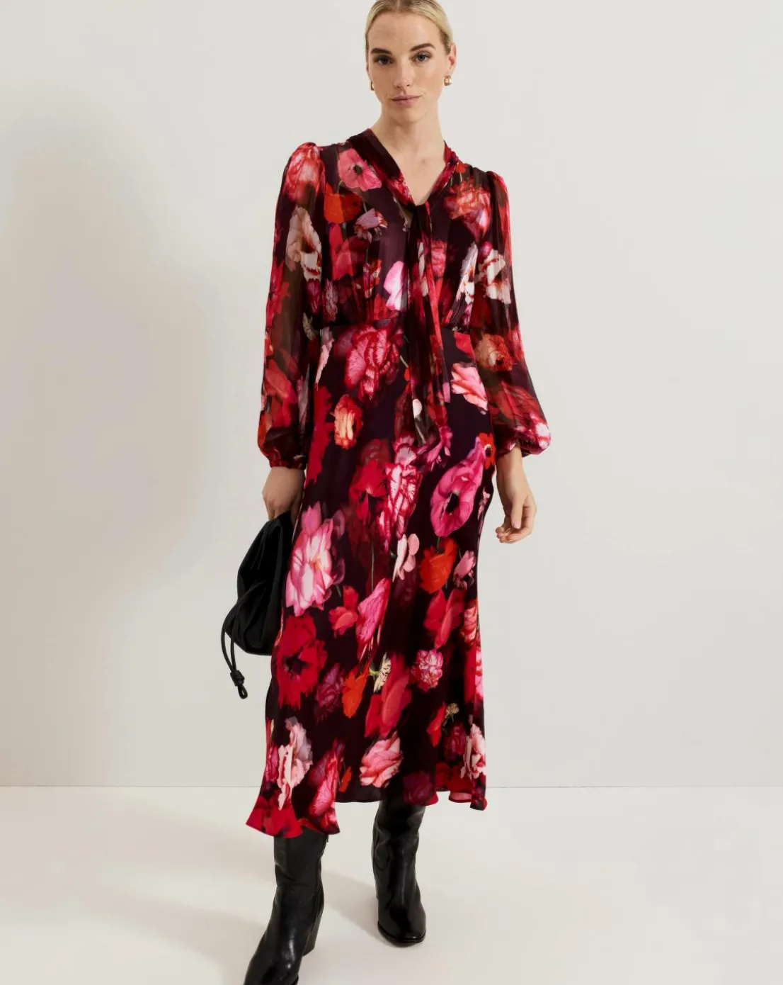 Phase Eight Eleini Floral Tie Neck Midi Dress