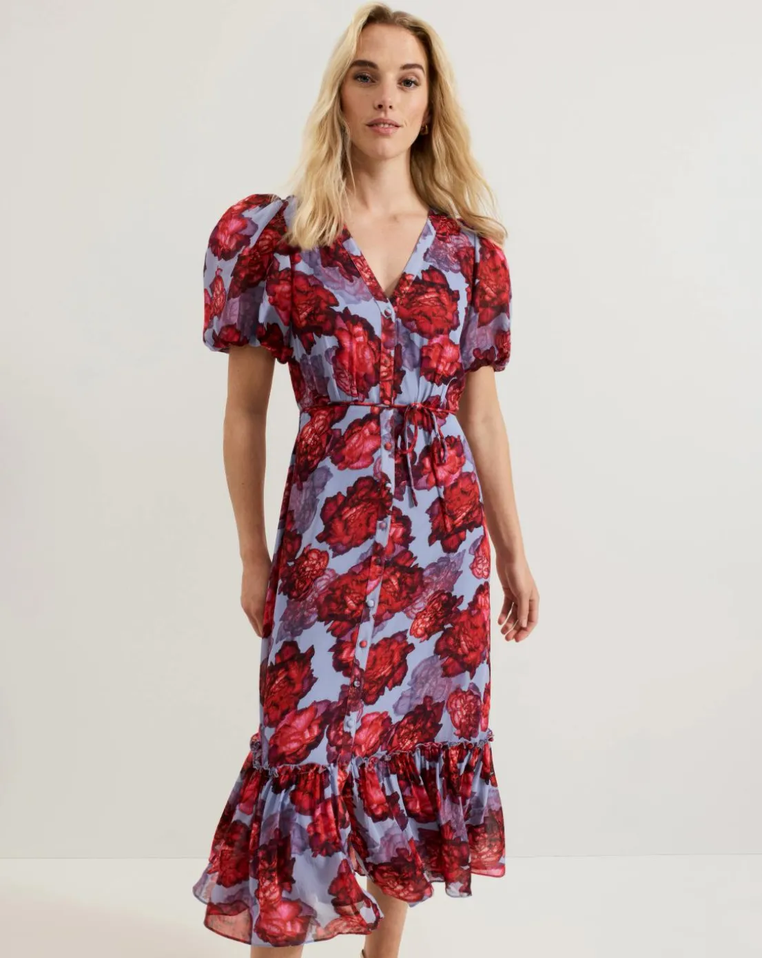 Embrace statement florals for all your upcoming events. Our Francesca dress features feminine puff sleeves that add subtle dimension to the silhouette, flowing through to a midi length tiered skirt. Finished with a tie detail at the waist to highlight your figure it’s guaranteed to make you stand out at every occasion.