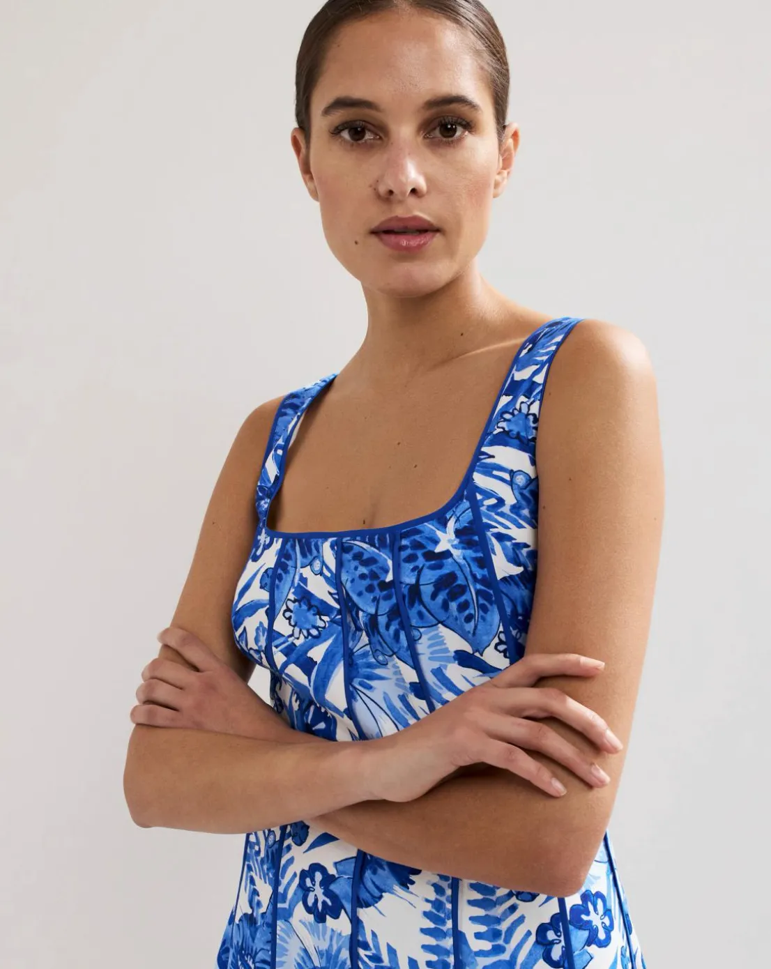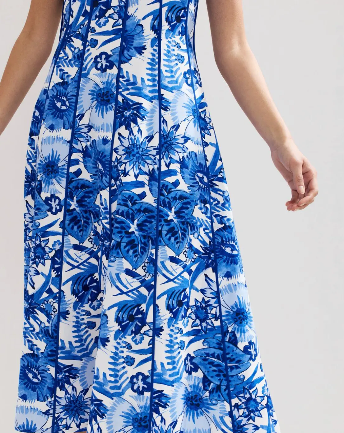 Vibrant florals dance across our cobalt Goldie dress to create a stunning occasion style. The pipping detail adds a subtle structure to the flowing midi silhouette, perfect for special occasions or summer holidays. Love this print? Discover our Tamzin jumpsuit.