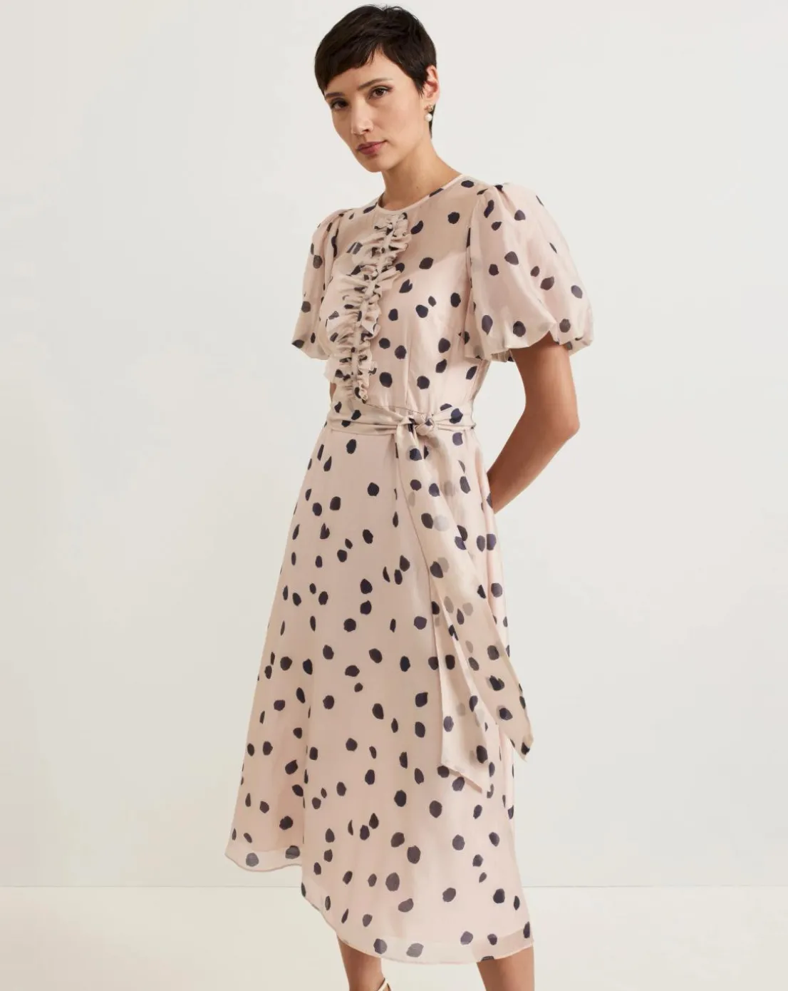 Phase Eight Nicola Spot Ruffle Midi Dress