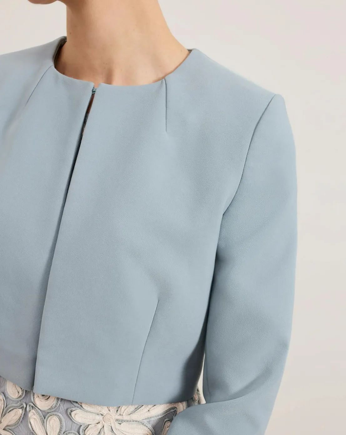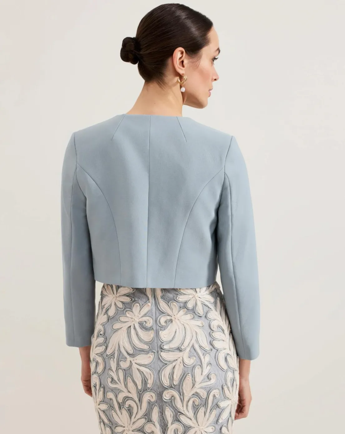 Our Phoebe jacket is a refined wardrobe staple. Tailored in a cropped silhouette with exposed seam detailing at the back for a flattering fit it’s the perfect feminine style to layer over all your favourite event looks.