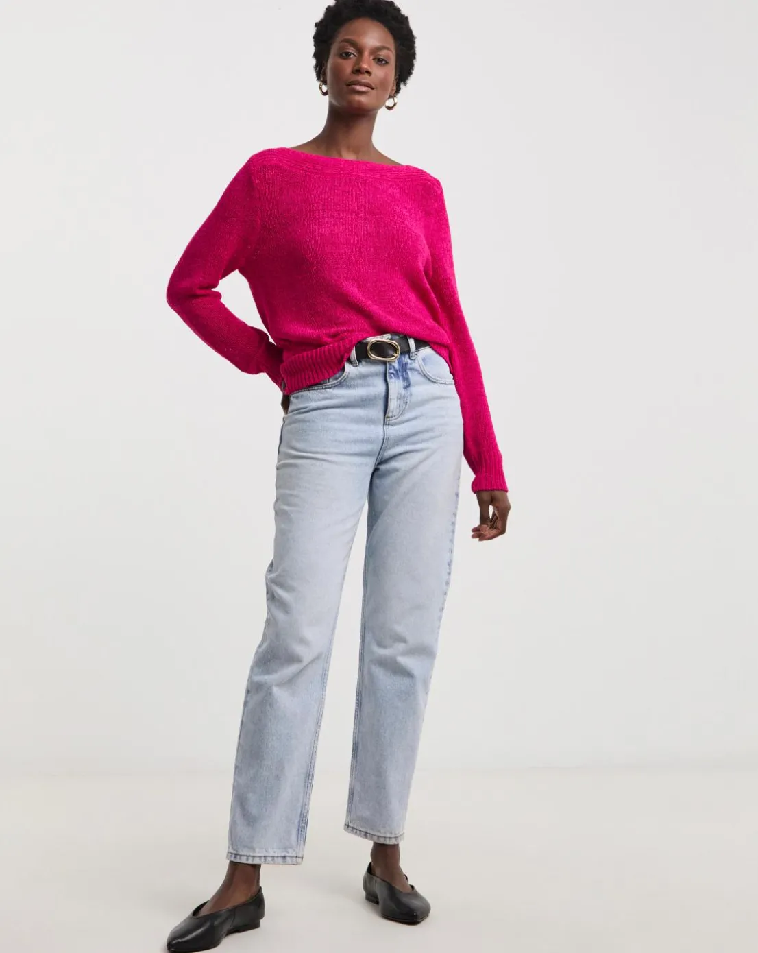 This tape yarn jumper comes in a bright pink featuring long sleeves and a regular fit.