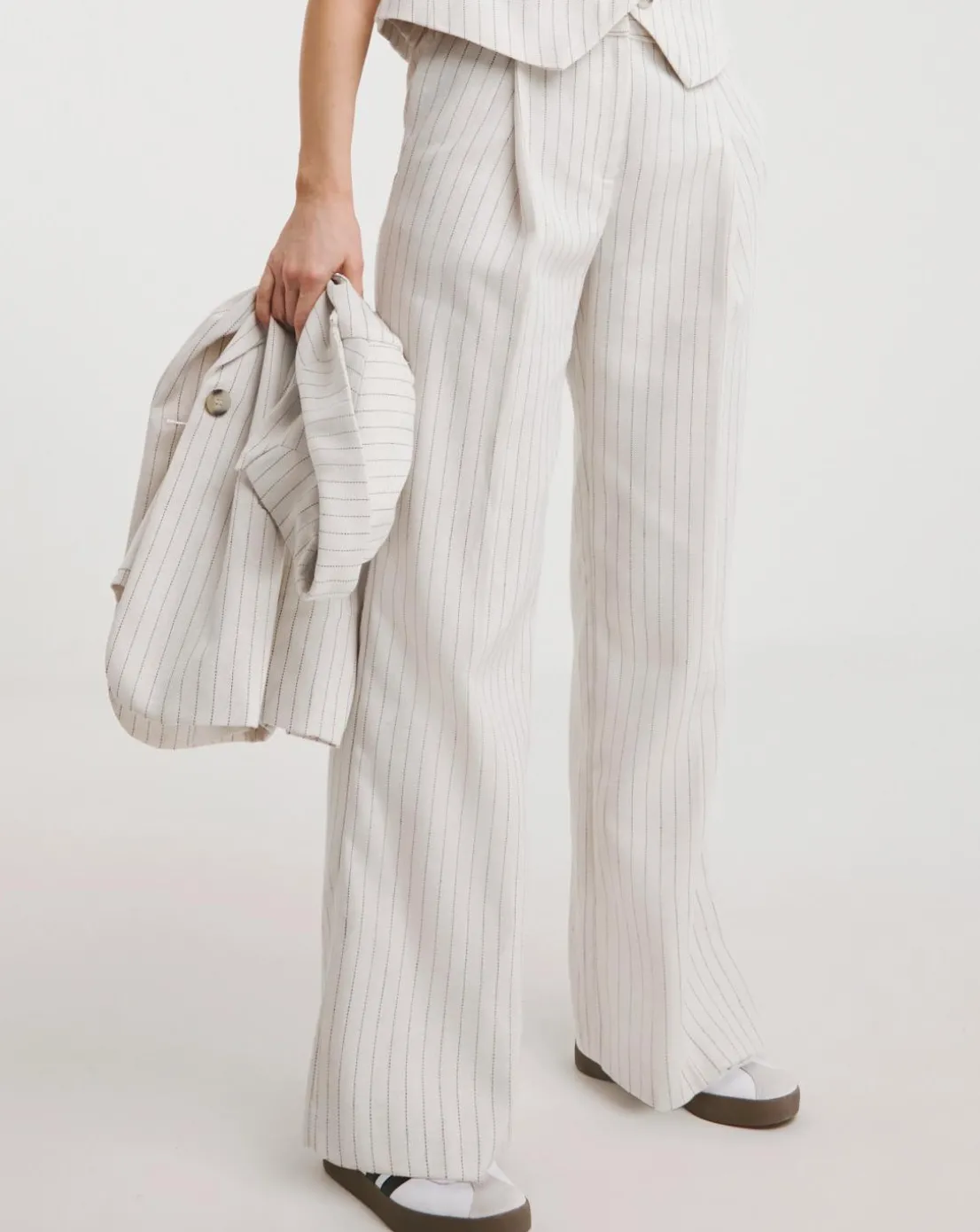 Be the first to review “Pinstripe Linen Wide Leg Trousers” Cancel reply
