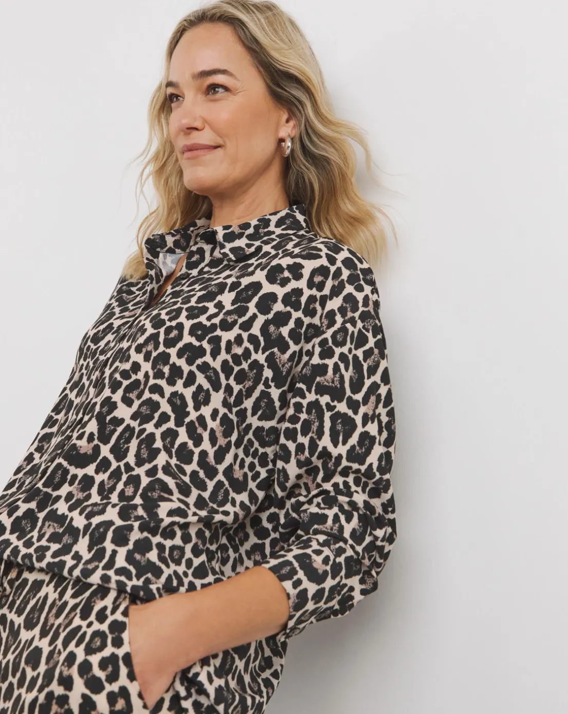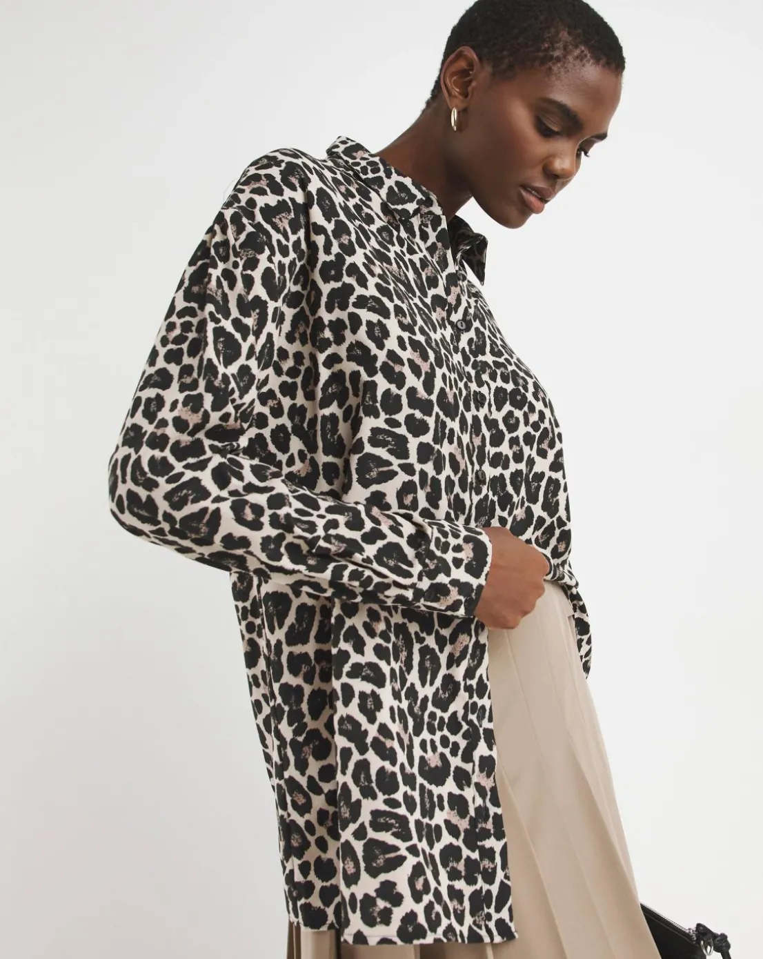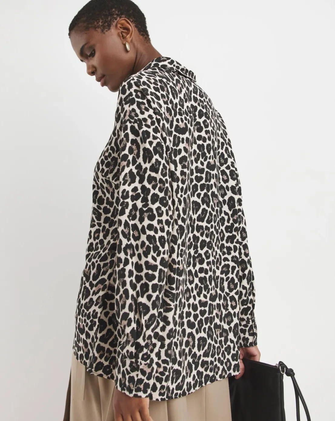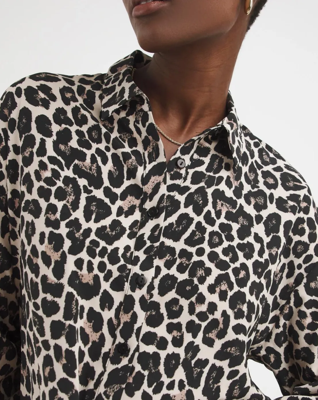 Show off your wild side in this leopard print shirt. The relaxed fit makes it feel modern and it can be worn for so many occasions. Style it down with jeans and boots or add a satin slip skirt and heels for an effortlessly chic evening look.