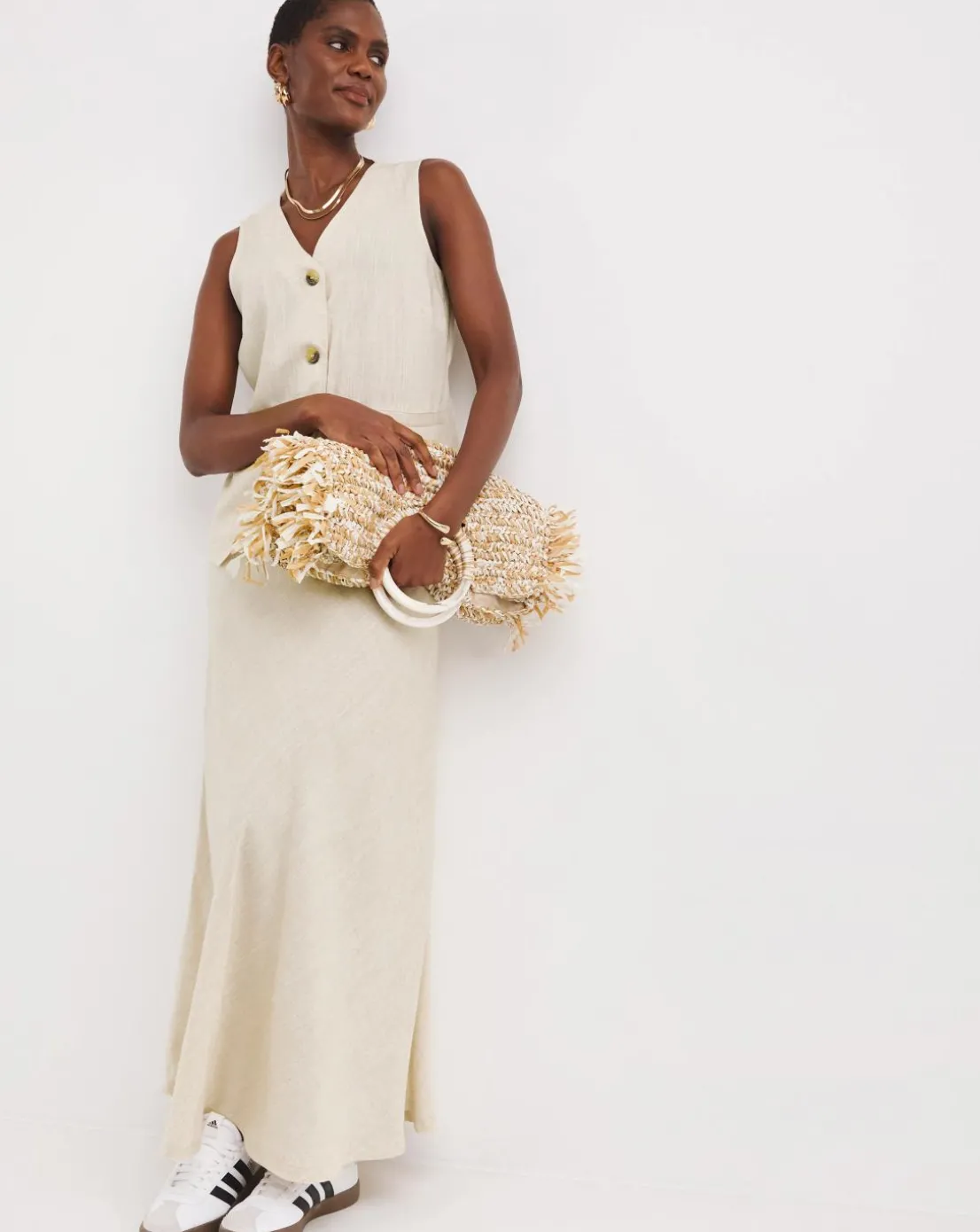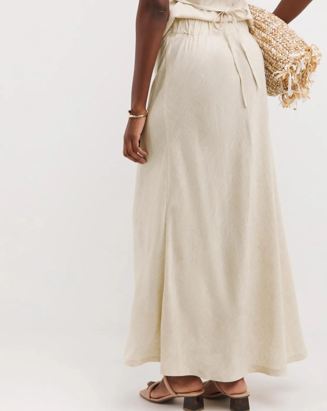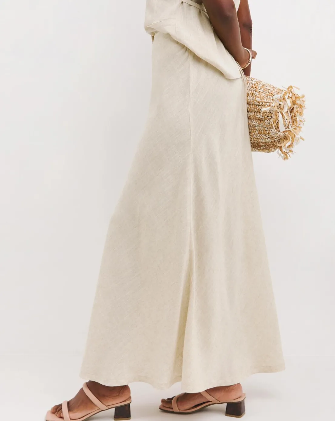 Sand Linen Mix Bias Cut Maxi Skirt