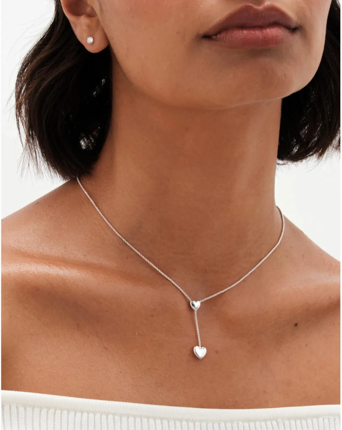 - Our iconic Simply Silver collection boasts fine, contemporary and meaningful 925 Sterling Silver jewellery. This beautifully designed Simply Silver Sterling Silver 925 Polished Heart Y Drop Necklace is perfect for any occasion. Wear solo or stack with your favourite pieces, perfect for gifting yourself or a loved one.