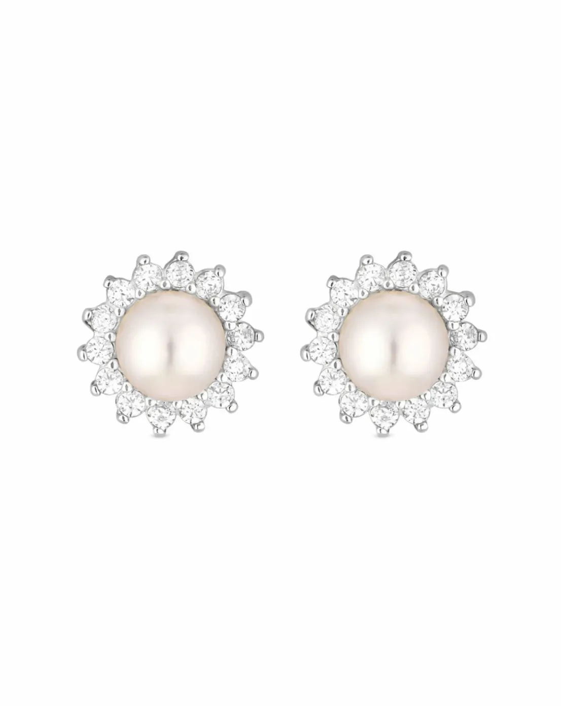 - Our iconic Simply Silver collection boasts fine, contemporary and meaningful 925 Sterling Silver jewellery. These beautifully designed Simply Silver Sterling Silver 925 Freshwater Pearl and Cubic Zirconia Halo Stud Earrings are the perfect way to finish any outfit, whatever the occasion.