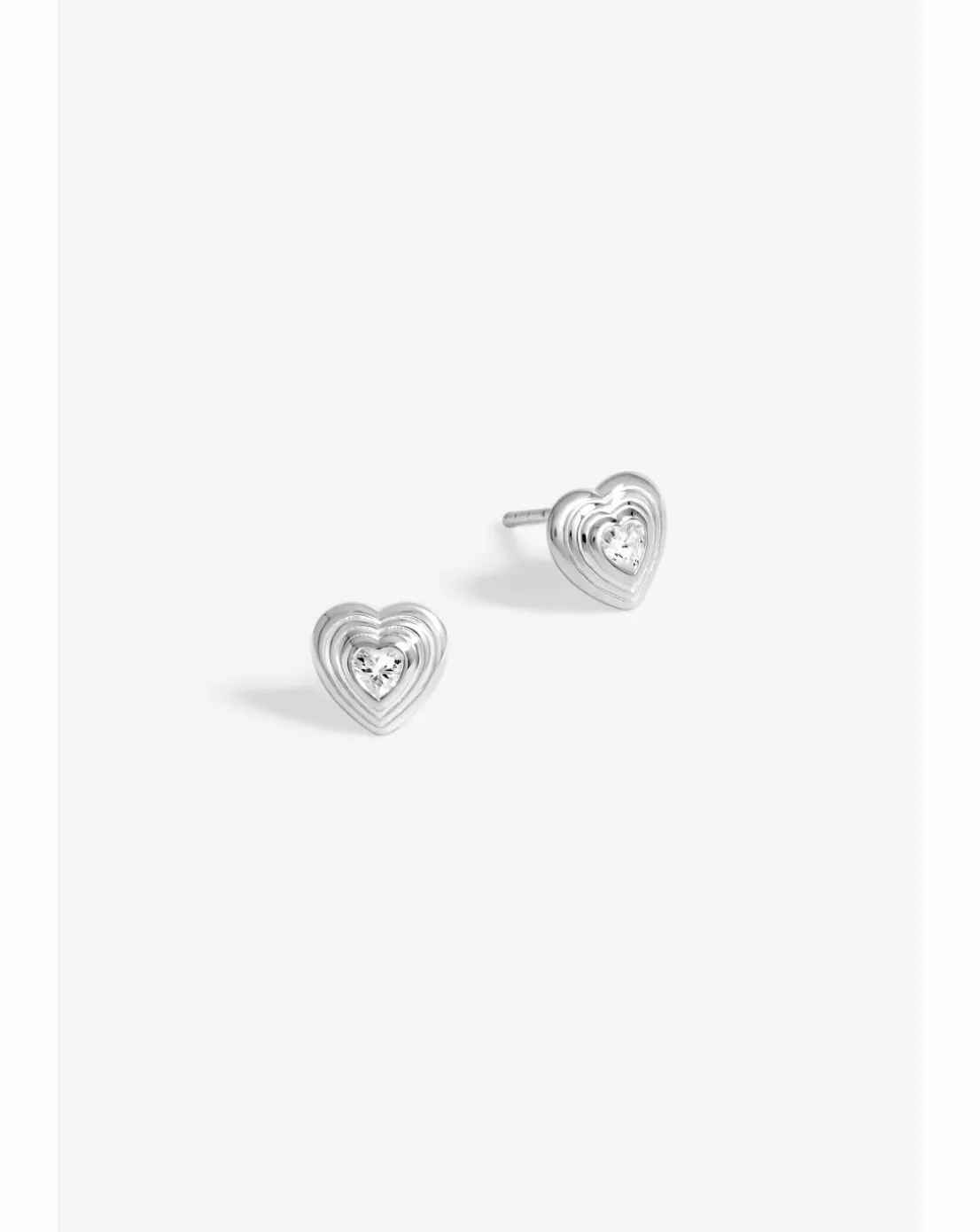 - Our iconic Simply Silver collection boasts fine, contemporary and meaningful 925 Sterling Silver jewellery. The Ridged Heart Cubic Zirconia Stud Earrings feature a unique ridged heart design, set with sparkling cubic zirconia for a radiant effect. These elegant studs add a touch of sophistication and shine to any look.