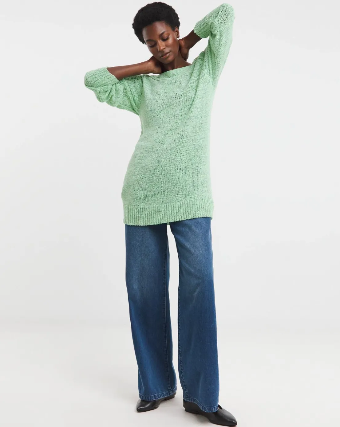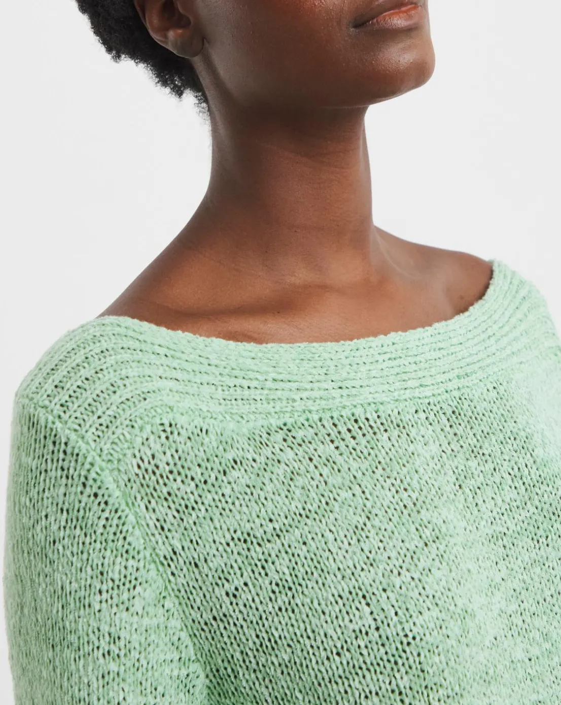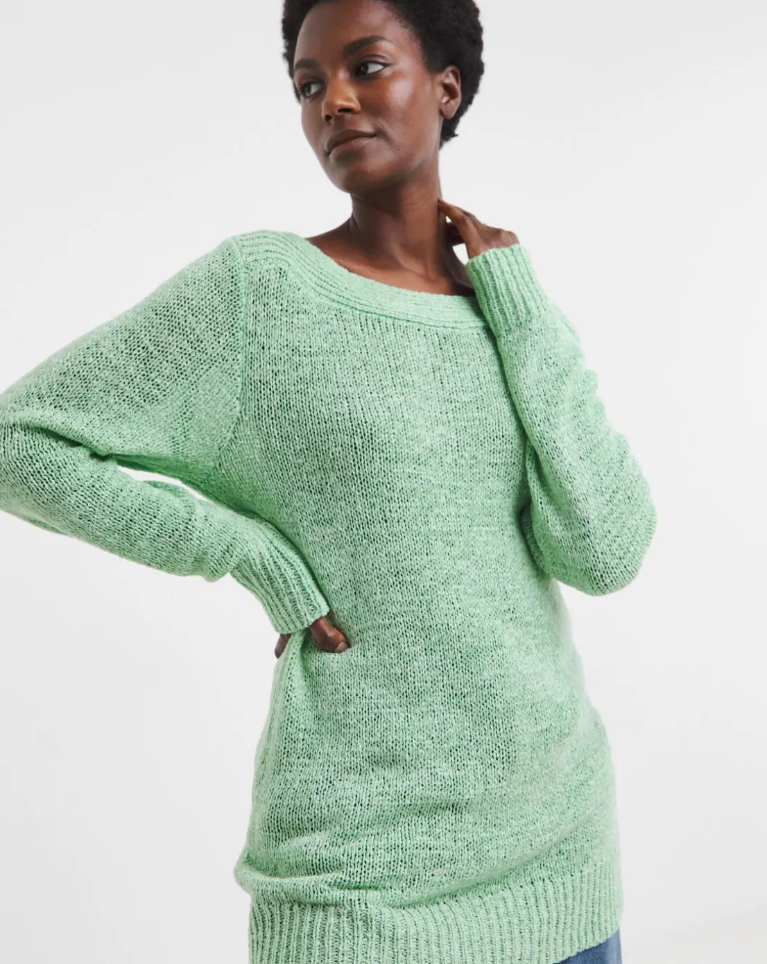 This tunic in green comes in a tape yarn material featuring long sleeves and a relaxed fit.