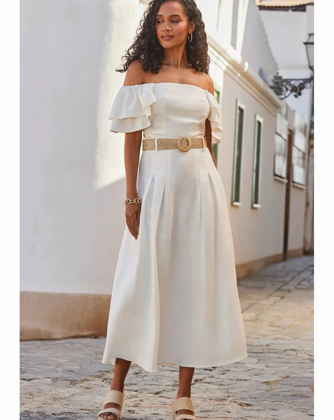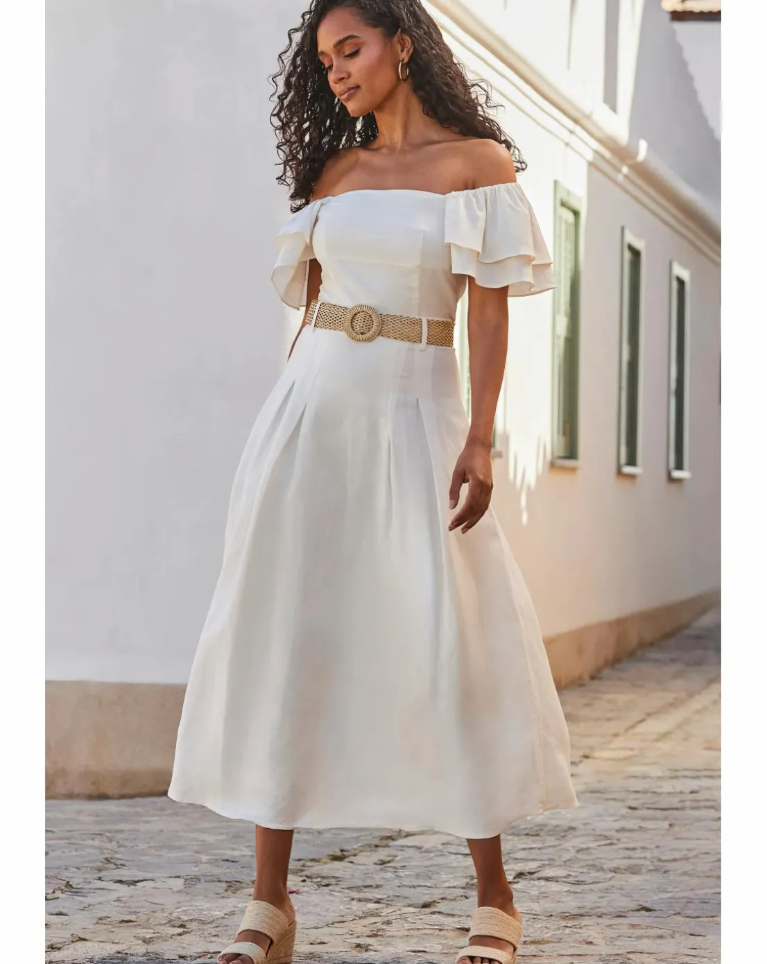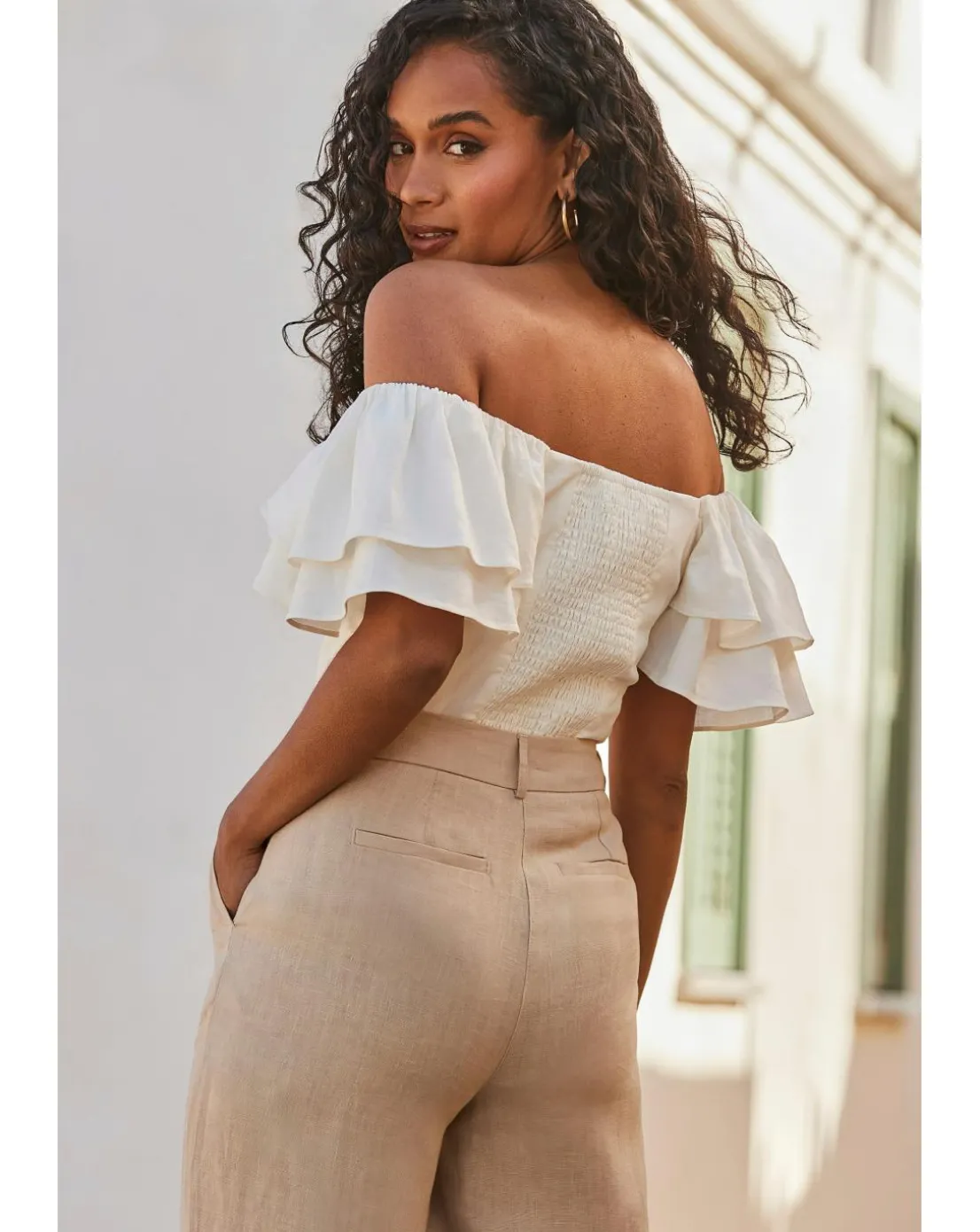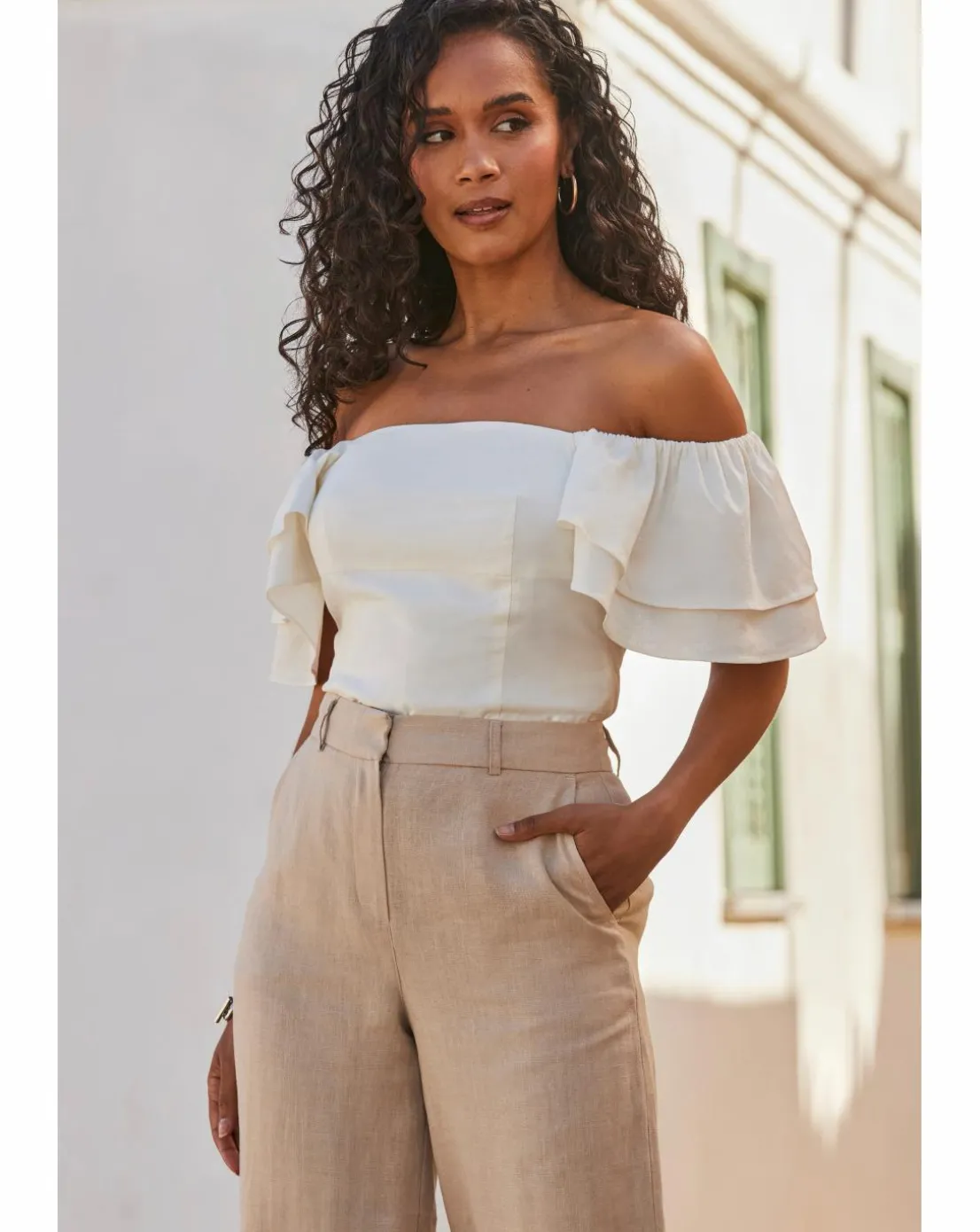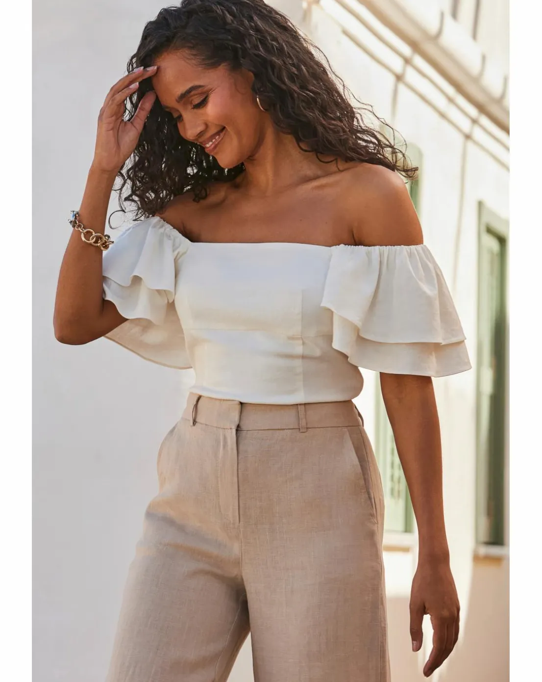 Be the first to review “Sosandar Linen Blend Ruffle Sleeve Bardot Top” Cancel reply