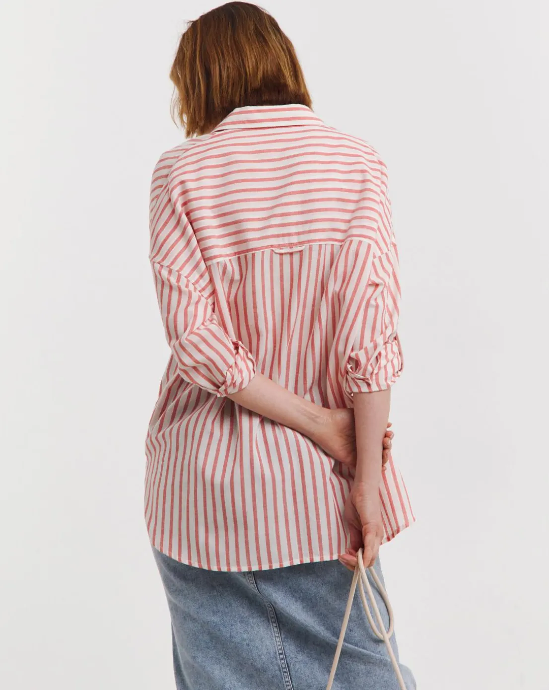 A classic stripe shirt is a wardrobe essential, and this terracotta colourway gives it an updated and contemporary feel. Style it with jeans and trainers for an effortlessly cool daytime look, or pair with trousers and loafers for a smart and chic workwear look.