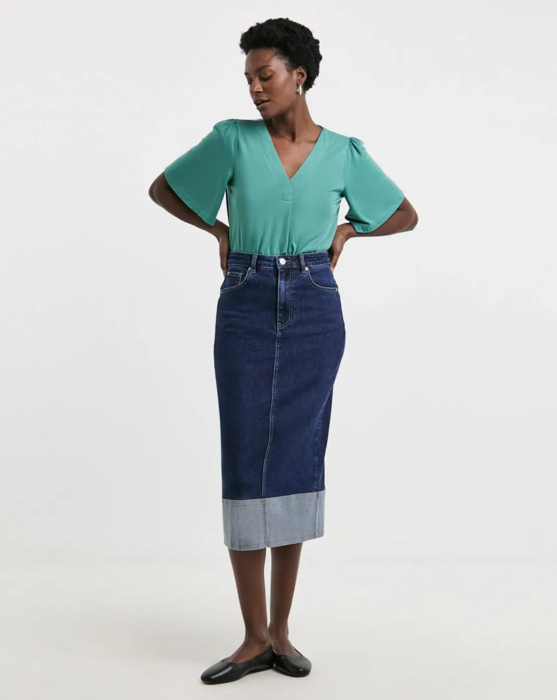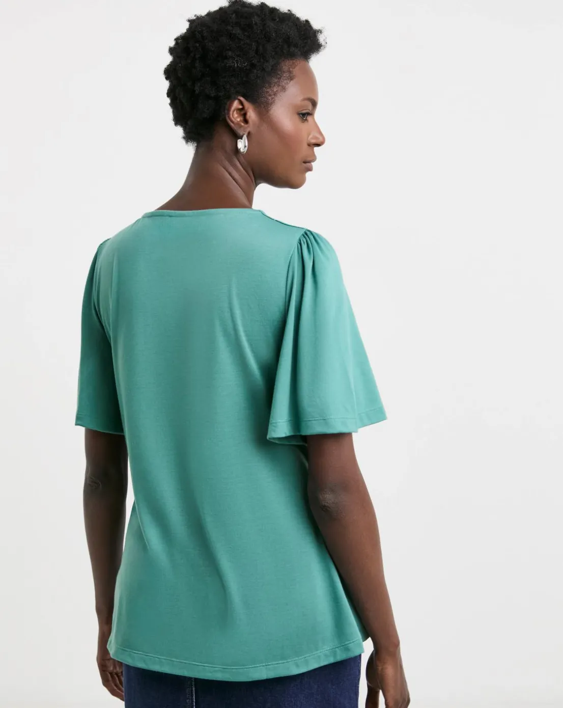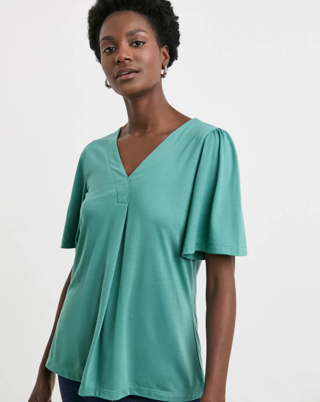 Teal V Neck Angel Sleeve Top