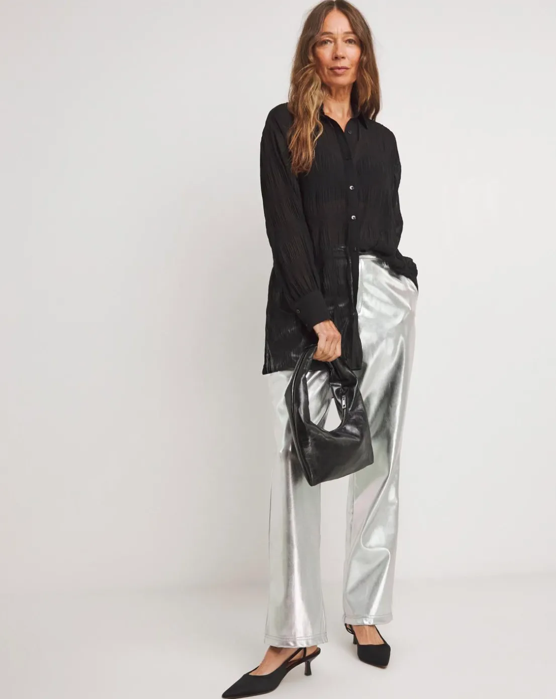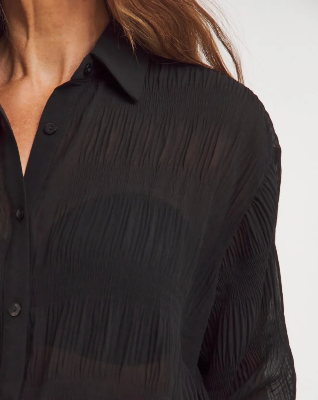 This chiffon shirt feels elegant and modern. The textured design and semi-sheer fabrication will elevate your look and take you through the upcoming season. Pair it with jeans for an effortlessly cool off-duty look, or dress it up with trousers and accessories.