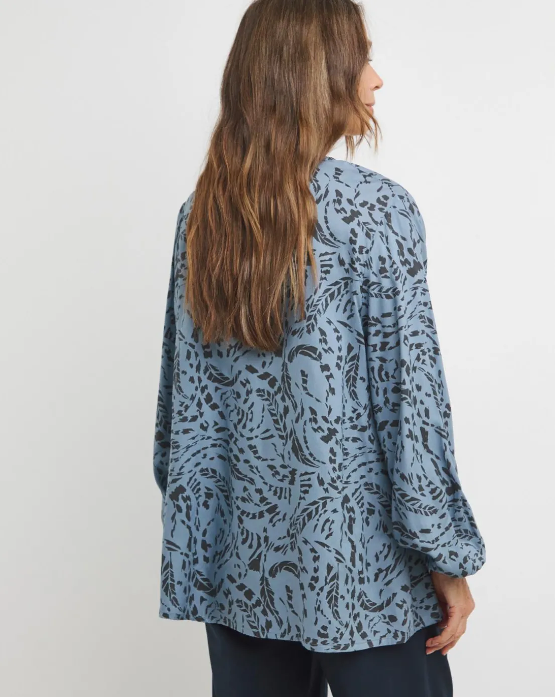 This long sleeve blouse has a relaxed fit and tie detail, and the blue print offers a cool and contemporary feel. Perfectly styled with denim and boots for an off-duty daytime look.