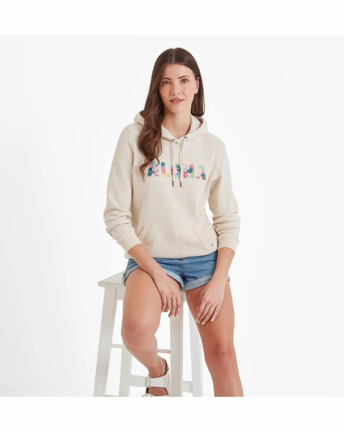- The Arizona hoodie is super warm and soft on the skin. Made from a brushed-back cotton blend, this hoodie is perfect for chilly days or casual hangouts. The cosy two-tone oatmeal fabric gives it a distinctive look, while the intricately embroidered ‘ALOHA’ slogan on the chest adds a touch of personality. Designed for comfort, it features adjustable drawcords on the hood, kangaroo pockets with ribbed openings, and ribbed cuffs and hem for a snug fit. Finished with a TOG24 label on the pocket, the Arizona hoodie is a good choice all round.