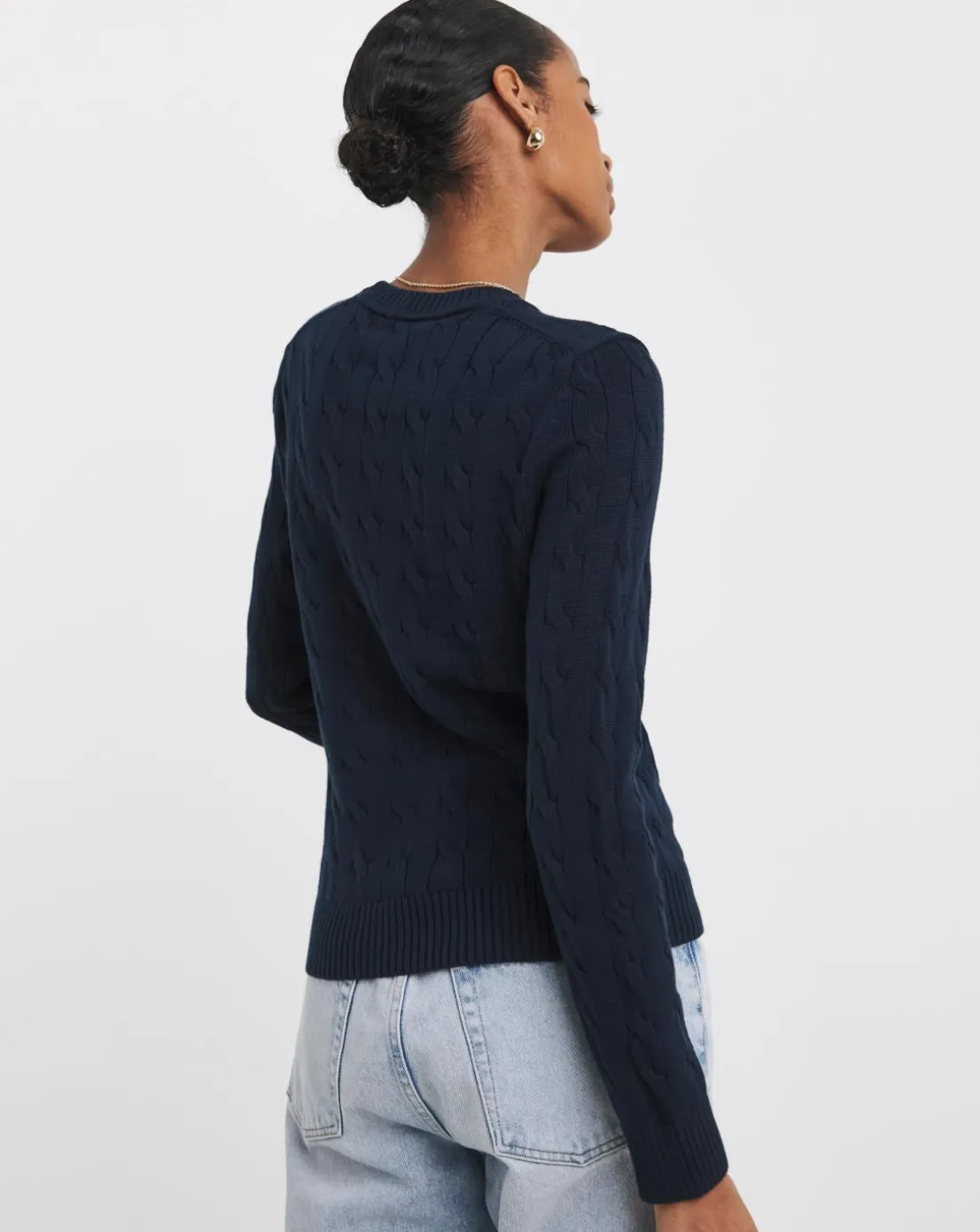 Layer up in timeless style by pulling on this light jumper that’s made from pure cotton with a fine-gauge cable-knit design.