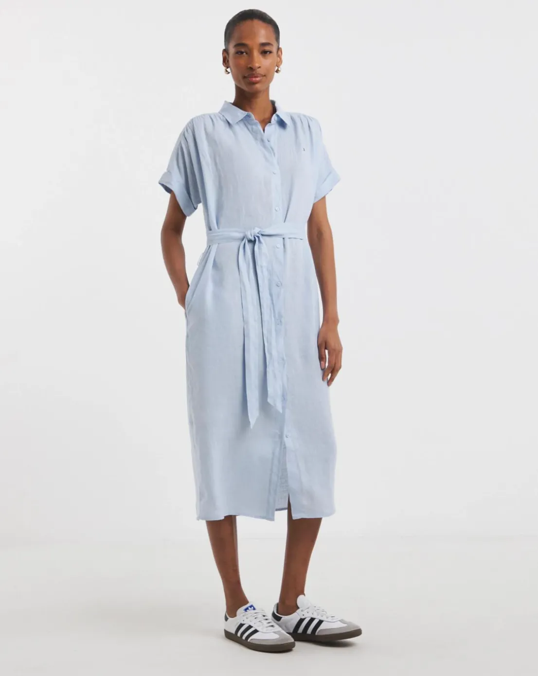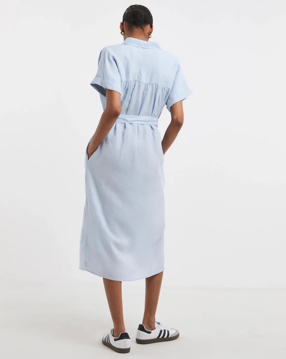With its breezy linen fabric and midi length, this timelessly chic shirt dress is perfect for warm-weather occasions.