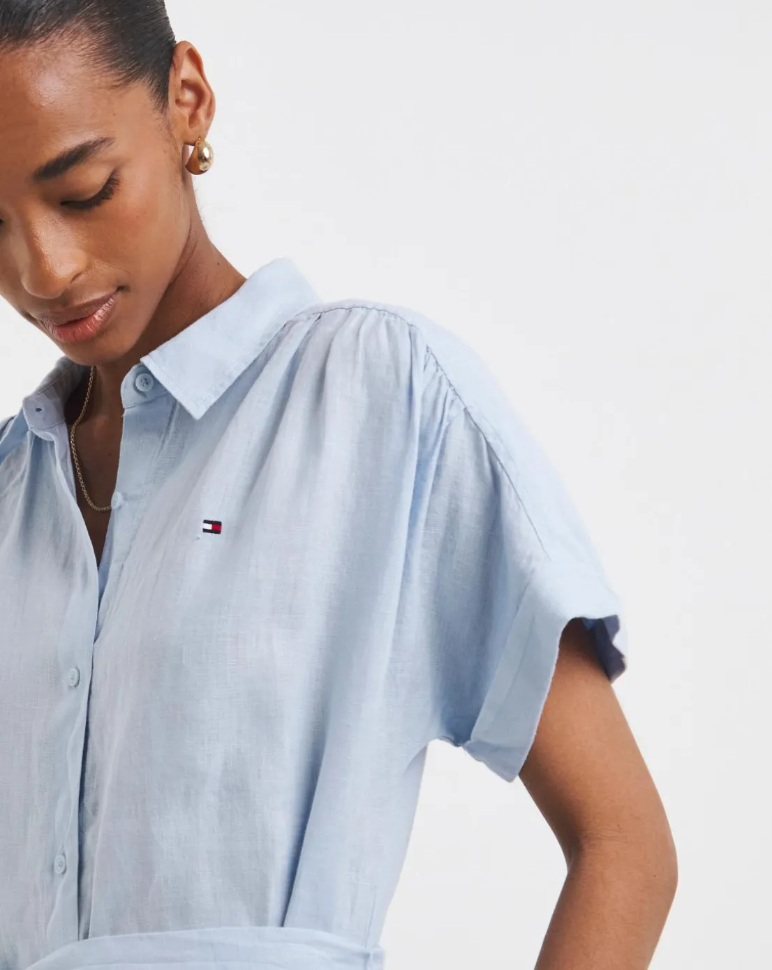 Tommy Hilfiger Linen Belted Short Sleeve Midi Dress