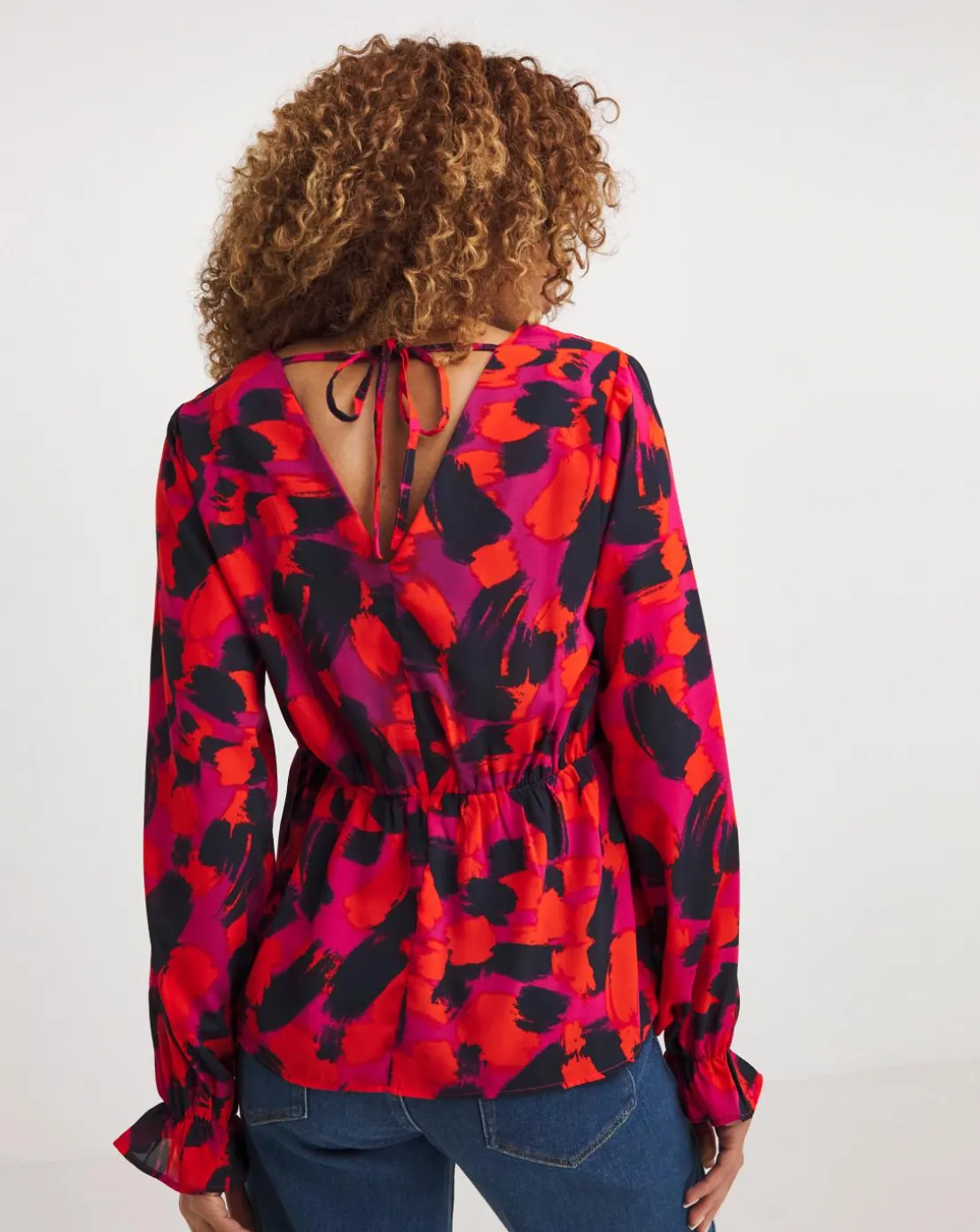 This V-neck tea top gives extra detail to any outfit, with it’s volume sleeves and flattering shape. Let this bold, fun print do the talking – just add some jeans and heels and you have the perfect evening look.