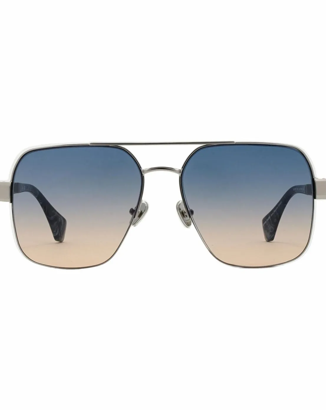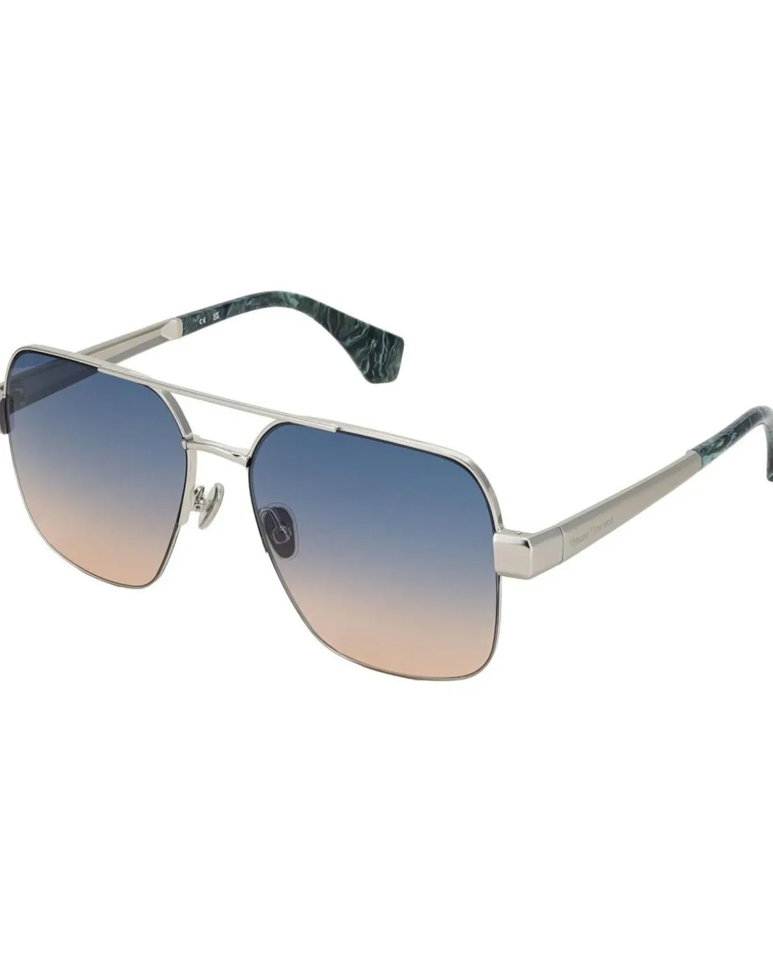 - Vivienne Westwood brings you these understated and very stylish double bridged metal navigator sunglasses. Shown here in a silver finish with fashionable blue to peach graduated lenses and complementary temple tips.