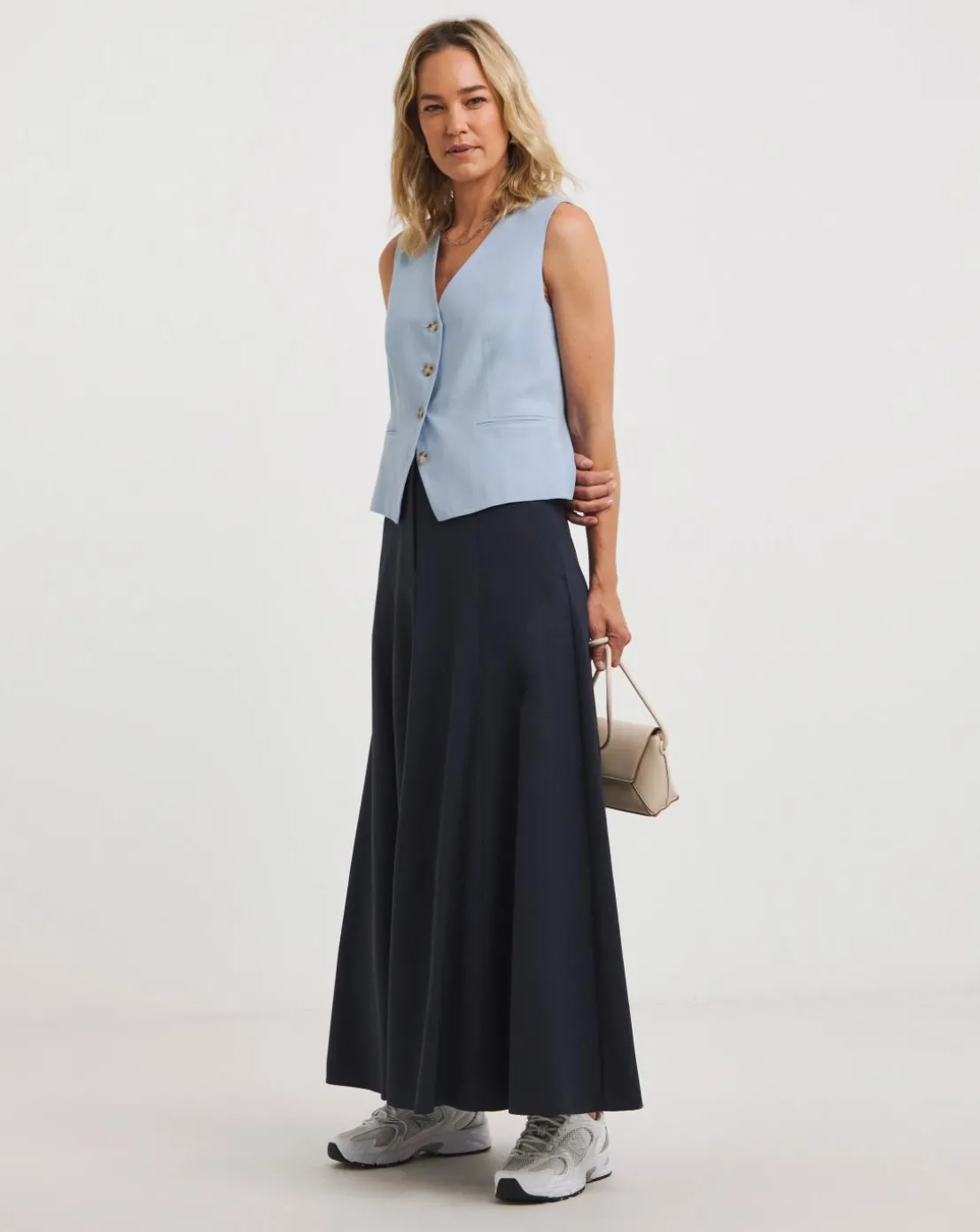 This washed textured waistcoat adds a feminine tailored touch to any outfit. Complete with button through front, v-neckline and flattering seam detailing, this waistcoat is a versatile layering piece.