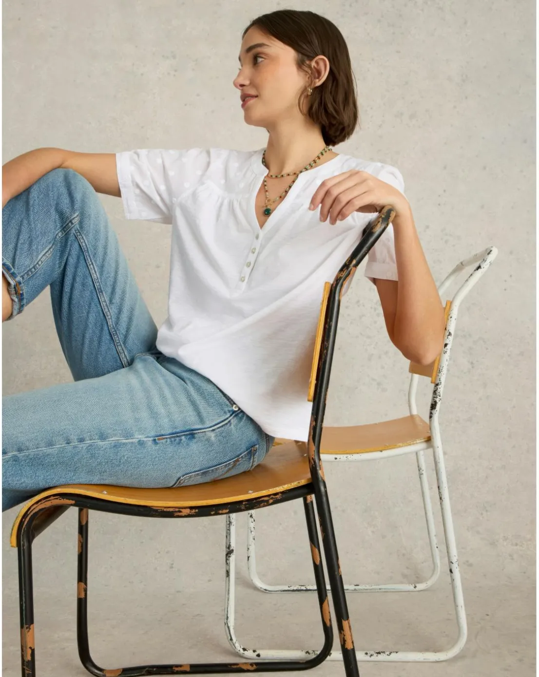 A textured sleeve is always a yes from us. Like these spotty ones. Choose this tee when you’re feeling a little fancy. (That can be all the time, by the way.)
