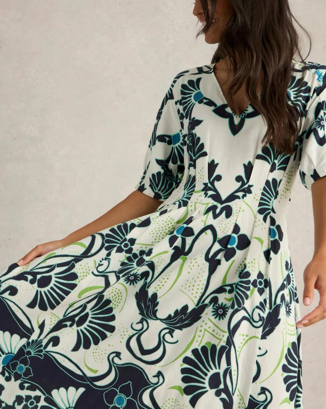A print so fabulous, nothing else we say about this dress could possibly compare. Although, it is made from a linen-LENZING ECOVERO viscose blend. And that’s pretty fabulous, too.
