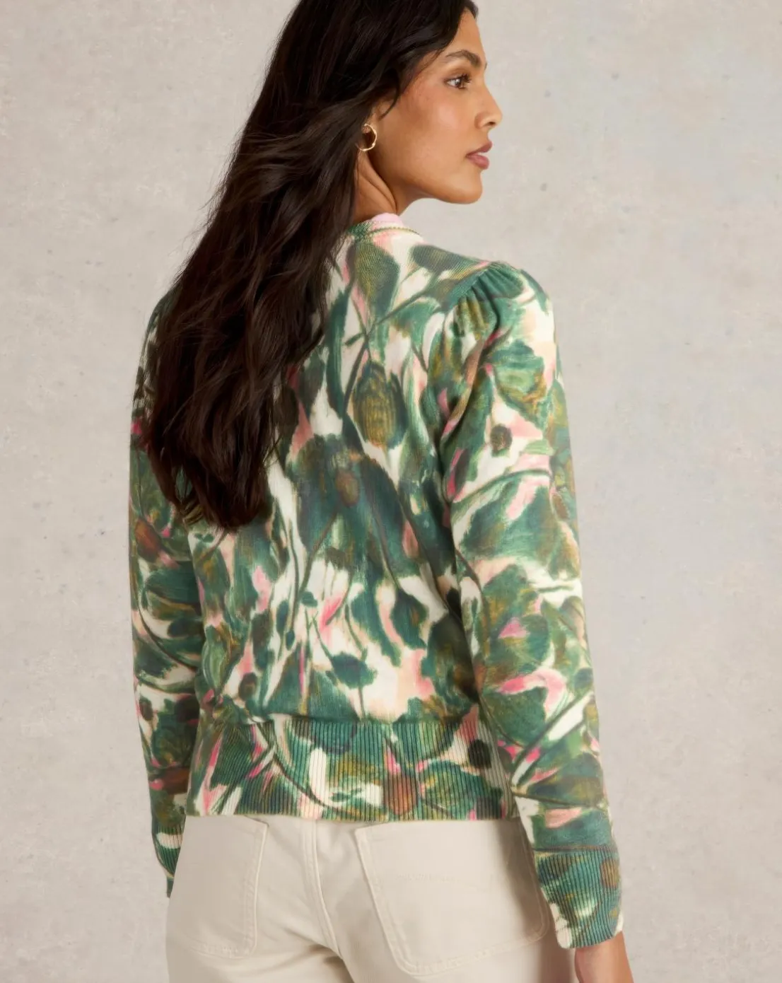 A little nod to the natural world (and not just because it’s made from 100% organic cotton). This print is fauna-inspired and knitted in a fine gauge. Complete with puff shoulder sleeves.
