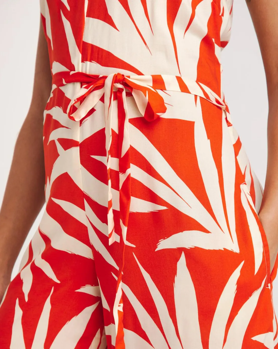 Our new wide leg strappy jumpsuit has been designed in two striking prints, Orange palm print and Aubergine abstract. The jumpsuits features wide flowy legs for comfort, adjustable straps and a belt to cinch in the waist.