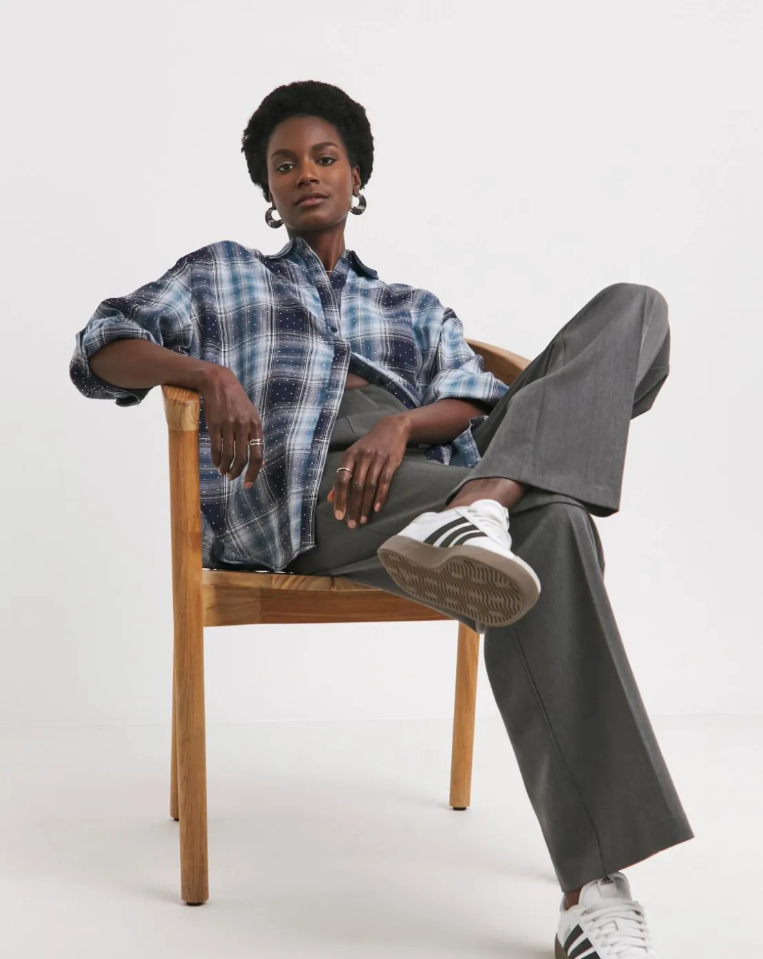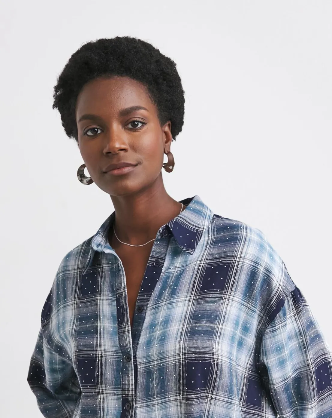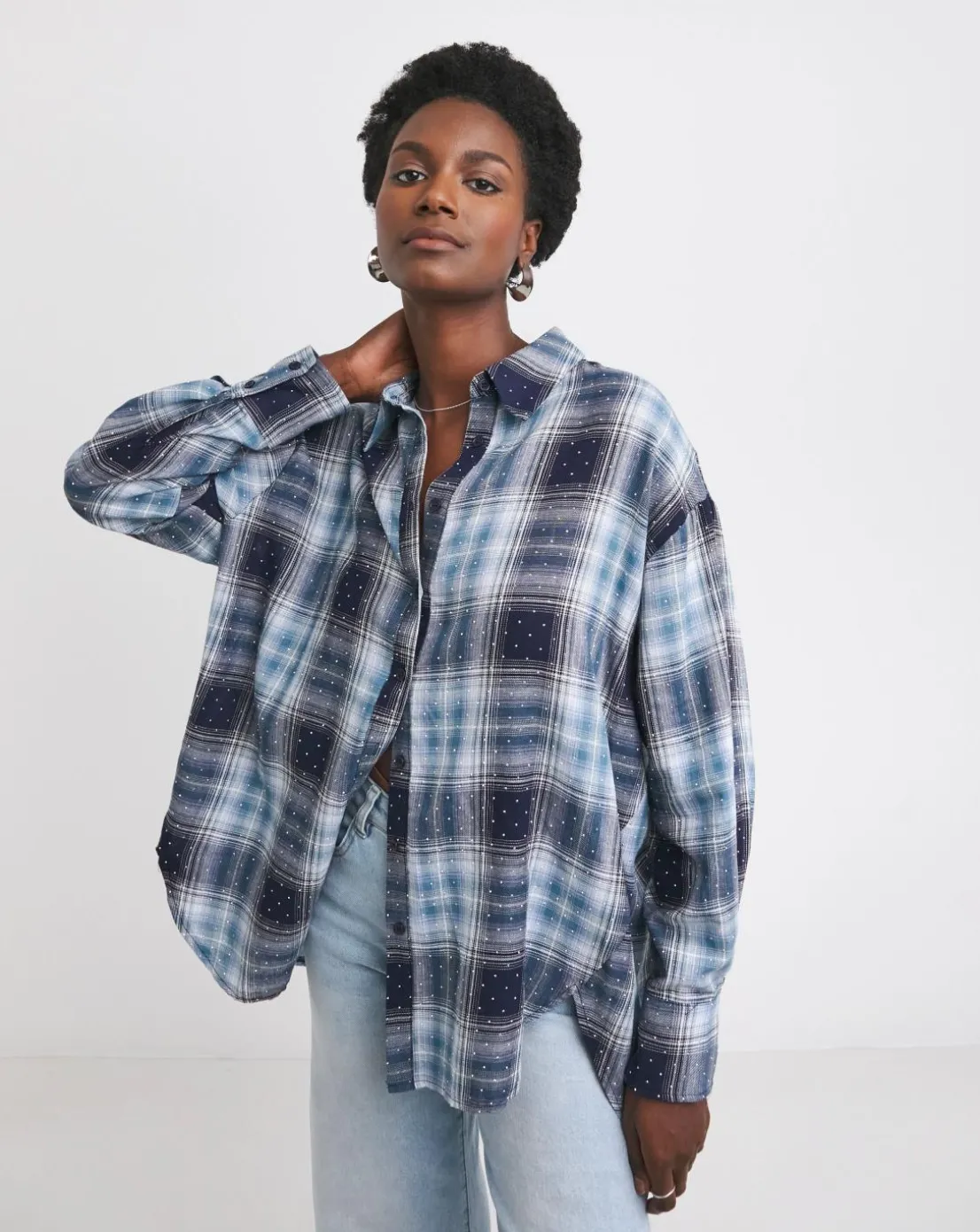Add some sparkle to your everyday with our embellished check shirt, which comes in an oversized fit. Pair it with denim and boots for an effortlessly cool look, or dress it up with faux leather trousers and heels.
