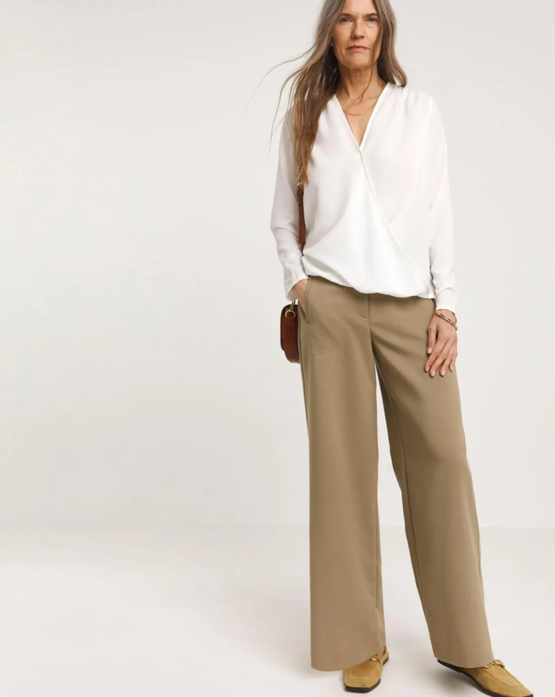 This wrap drape blouse will elevate any look, and can take you from day to night. Style it with a pair of wide leg trousers and loafers for the office, before switching into jeans and trainers for a casual evening look.