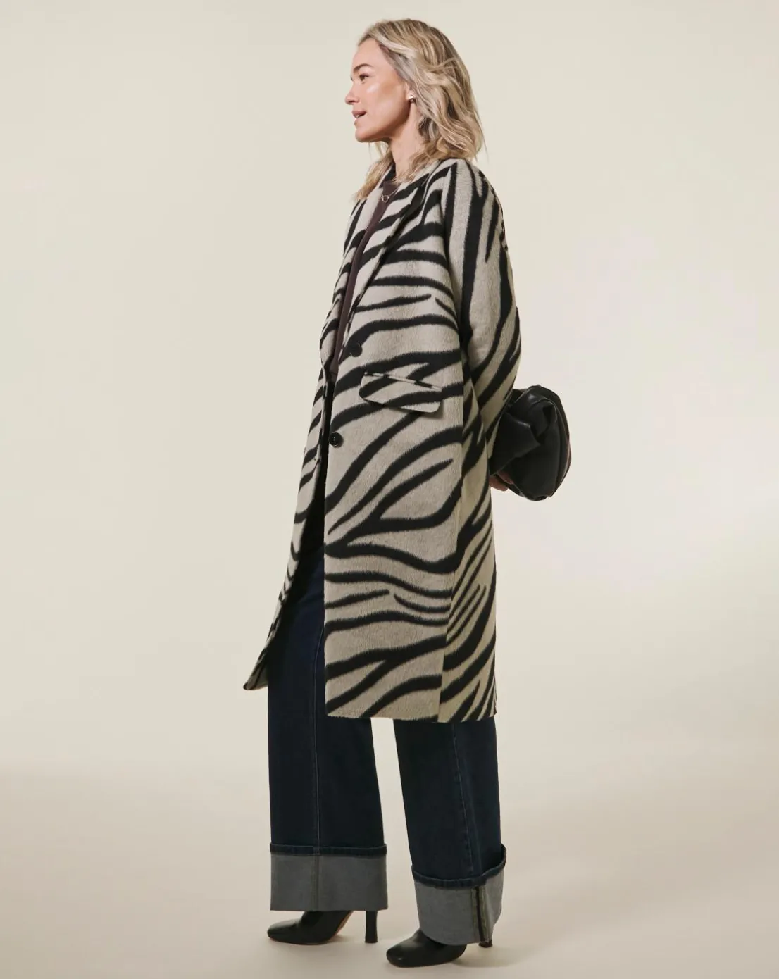 Animal is the print of the season, shop now our Zebra Printed Wool Coat. Featuring a lapel collar, flattering maxi length, double breasted and front pockets.